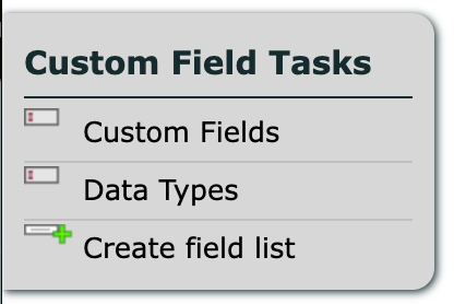 Custom fields are always created within a field list within Case Manager. You can also have multiple field lists comprised of many different types of custom fields. You'll first need to decide whether you are creating a new field list to create custom fields within or if you would like to add additional custom fields to an already existing field list. See below for both methods: