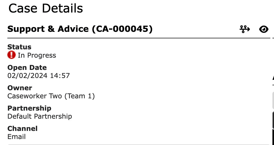 To access these tabs, simply click the 'eye' icon shown below which can be found on the case details screens in upper right.