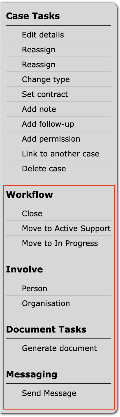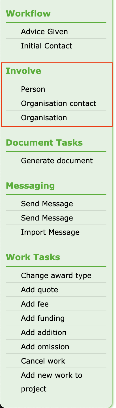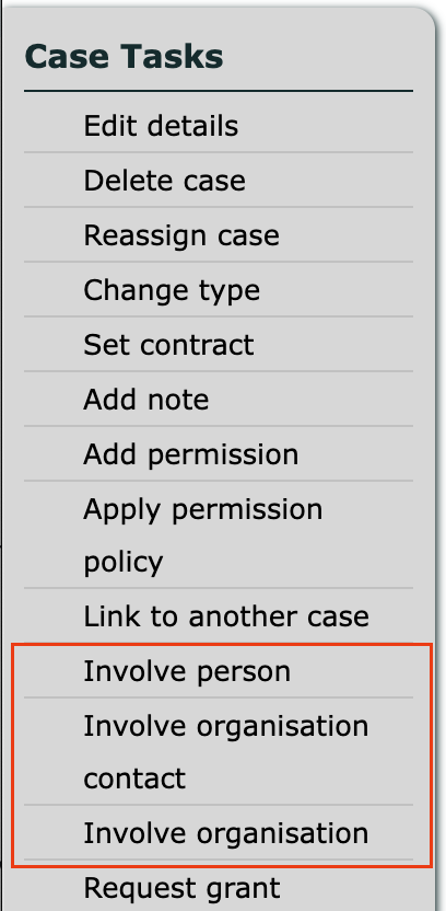 For example, involving a person or organisation on a case was previously included in the Case Tasks section: