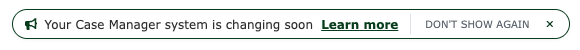 We’re introducing new ways to keep you informed about Case Manager. After logging in, you’ll see an Announcement Banner at the top right of your homepage.